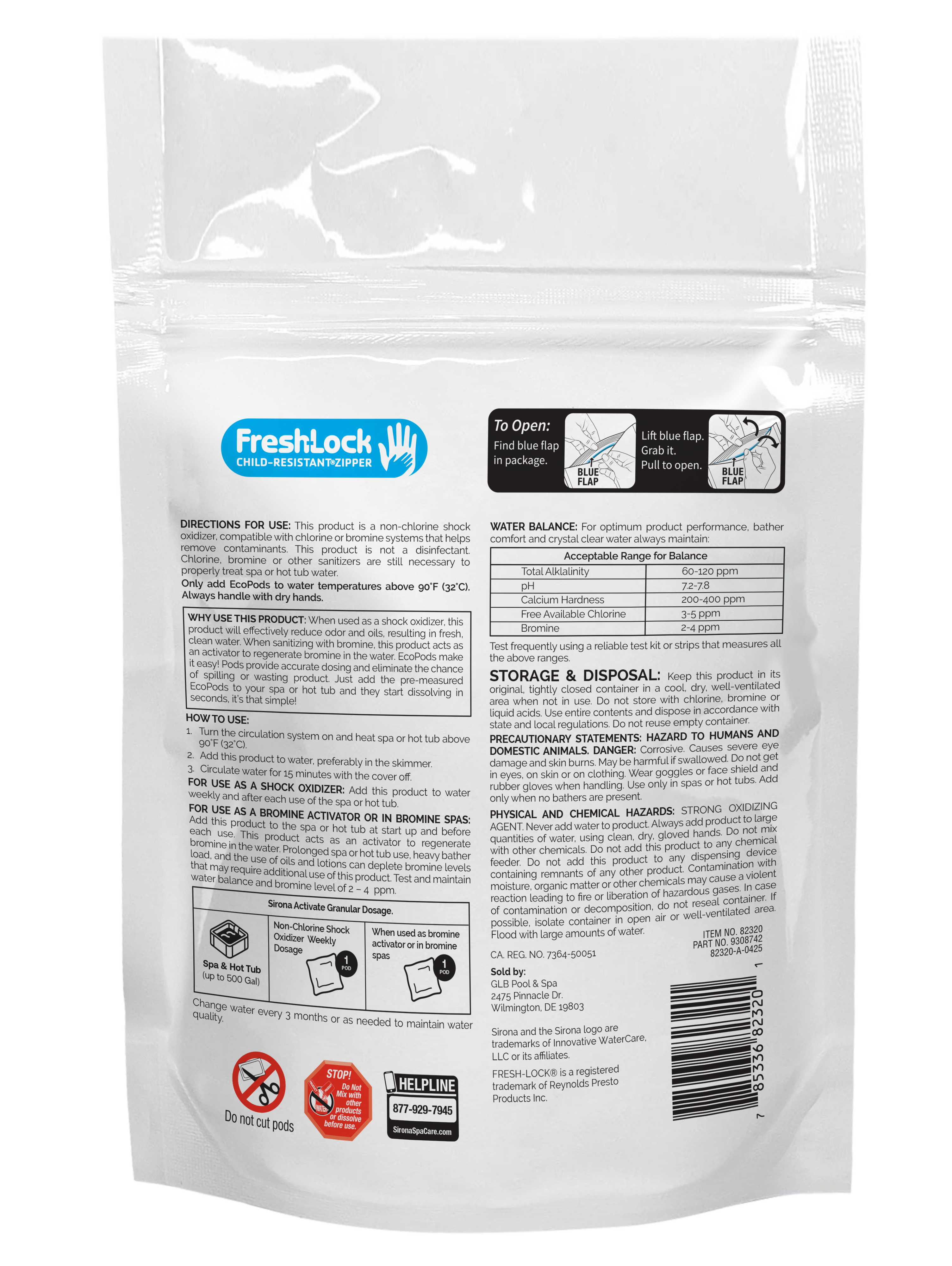 Sirona™ Activate Granular EcoPods deliver the same trusted benefits as our Activate Granular (2.2 & 5 lbs.) — now in a convenient, pre-measured pod form. Designed for safe, no-touch dosing, these pods dissolve completely, leaving your spa water sparkling, clean and soothing.